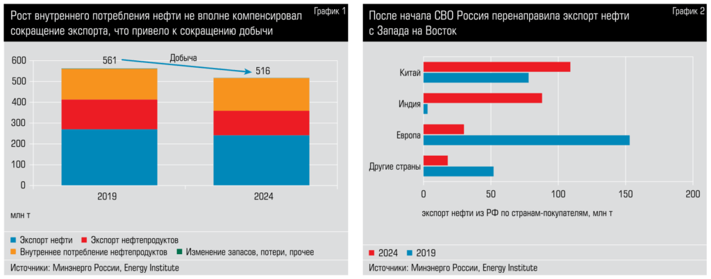 Санкции привели к значительной переориентации экспортных потоков. Если в 2019 году 60 процентов российской экспортной нефти двигалось по нефтепроводам и шло в танкерах в западные страны, прежде всего в ЕС, то в 2024-м 90 процентов нефтяного экспорта ушло в дружественные страны Востока и Юга, прежде всего в Китай, Индию и Турцию. Однако эта переориентация сопровождалась дисконтами, поэтому маржинальность экспорта значимо снизилась.