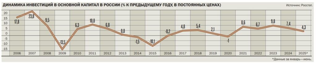 Во-первых, имела место инерция от ранее запущенных проектов. Многие предприятия поверили в тот экономический подъем, который проявился в 2021 и в 2023–2024 годах, и потратили деньги на модернизацию старых и создание новых мощностей. Однако значительная часть подобных проектов требует вложения денег на протяжении целого ряда лет. И если проект уже был запущен, то в большинстве случаев его стараются довести до конца, даже несмотря на ухудшение экономических условий. Потому что потери в случае отказа от завершения проекта могут оказаться намного выше. Кроме того, если ситуация в российской экономике достаточно быстро исправится, то ранее сделанные инвестиции в конце концов себя оправдают, пусть и несколько позже первоначальных ожиданий. Таким образом, вложения в уже начатые проекты во многом поддержали инвестиционную динамику 2025 года. Однако, если темпы роста в российской экономике не восстановятся, эта инвестиционная инерция, разумеется, через год-другой перестанет быть значимой.