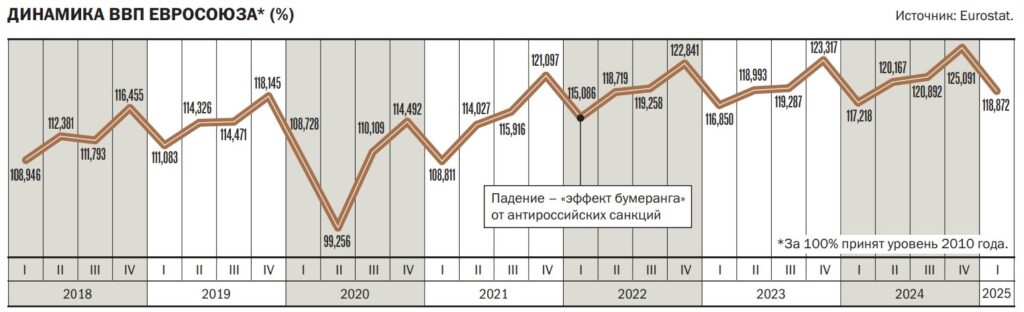Санкции, введенные Европейским союзом против России, оказали ограниченное влияние на экономику страны. В июле 2025 года ЕС объявил о запуске уже 18-го пакета. Однако очередные ограничения, направленные против России, оказали весьма значительное обратное воздействие — так называемый эффект бумеранга — на страны ЕС, в частности на Германию, Францию и Италию. Последствия были предсказуемы. Санкции, введенные в 2014–2015 годах, обошлись европейским странам потерями не меньшими, чем России, но последствия санкций, введенных с 2022 года, оказались для Европы значительно более ощутимыми.
